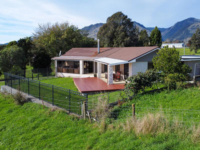 This 4875sqm site has lovely, elevated views both up and down the Takaka Valley. The 2 bedroom house has been extensively renovated, including new kitchen and bathroom, re painted and decorated. The large deck extends out from the living area, what a lovely sunny spot for a BBQ! All this just a short walk to Takaka and the Recreation Park.