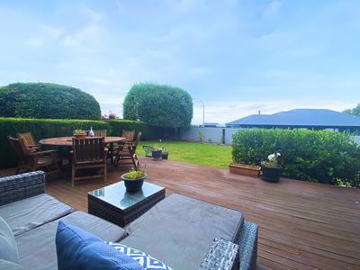 The generously sized master bedroom is complemented by three additional bedrooms, with two bathrooms. Outside, the landscaped garden and covered outdoor area provide a peaceful setting to relax.